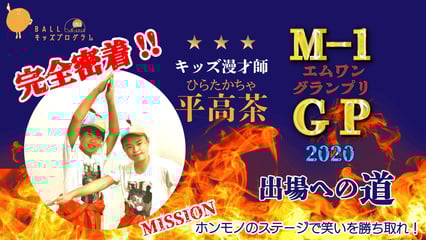 キッズ漫才師「 平高茶」が挑む、小学生最後の戦い。彼らが目指す先はただ1つ。M-1グランプリ2020出場だ。今回で3度目の挑戦となる予選の舞台。その裏側をボールキッズプログラムが完全密着!!大人たちに混ざりながら、全力で笑いの世界で戦う彼らの姿をご紹介。お笑い芸人たちの憧れ、M-1グランプリ2020のステージを目指し、念願の予選突破なるか…!!